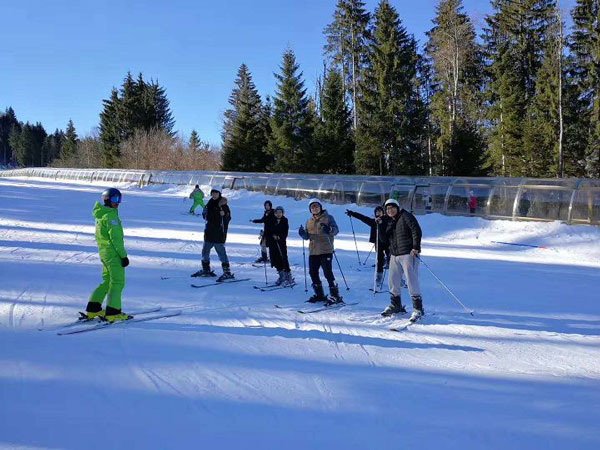 海拔4000米的阿尔卑斯山白雪覆盖,视野开阔。我们一路上欢笑不断,很快抵达了意大利阿尔卑斯山的Tarvisio滑雪场。