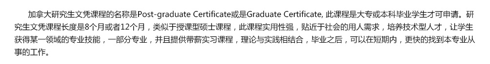 加拿大的公立学院有150多所,遍布全国各地。一般来说,学院都是小班教学。在加拿大绝大部分学院都与大学有合作关系,承担着为大学输送学生的任务。学院的大部分专业都与大学相应专业互相承认学分,学院设置的大学转学分课程可以让学生将学院的学分带进大学。学生完成学院的课程后,可以继续到大学深造,毕业后同时拥有学院的职业文凭和大学的学士学位。这种职业文凭及学士学位兼备的学生,既有扎实的理论基础知识,又有很强的实践动手能力,常常是企业需要也是竞争力强的人才。